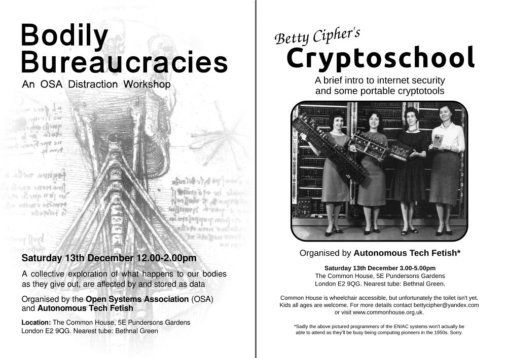 12.00-2.00pm Bodily Bureacracies (with OSA) - an exploration of data, power and bodies. Bring your own bureaucratic monster!